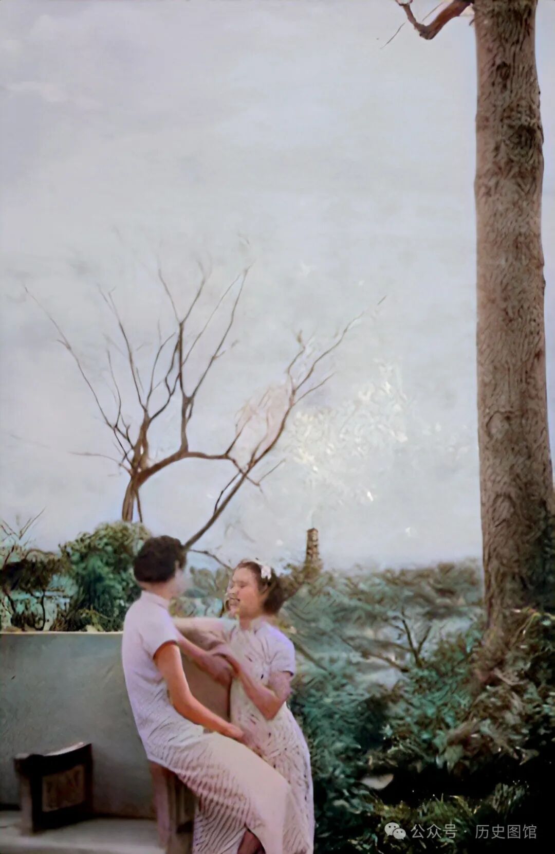 越秀山公园里,两名年轻女子在椅子上休息。她们长相漂亮,身穿旗袍,看上去很有年代感。公园内有古之楚庭和佛山牌坊,古城墙、四方炮台、中山纪念碑、伍廷芳墓、明绍武君臣冢、海员亭、五羊石像、五羊传说雕塑像群、球形水塔等景点。