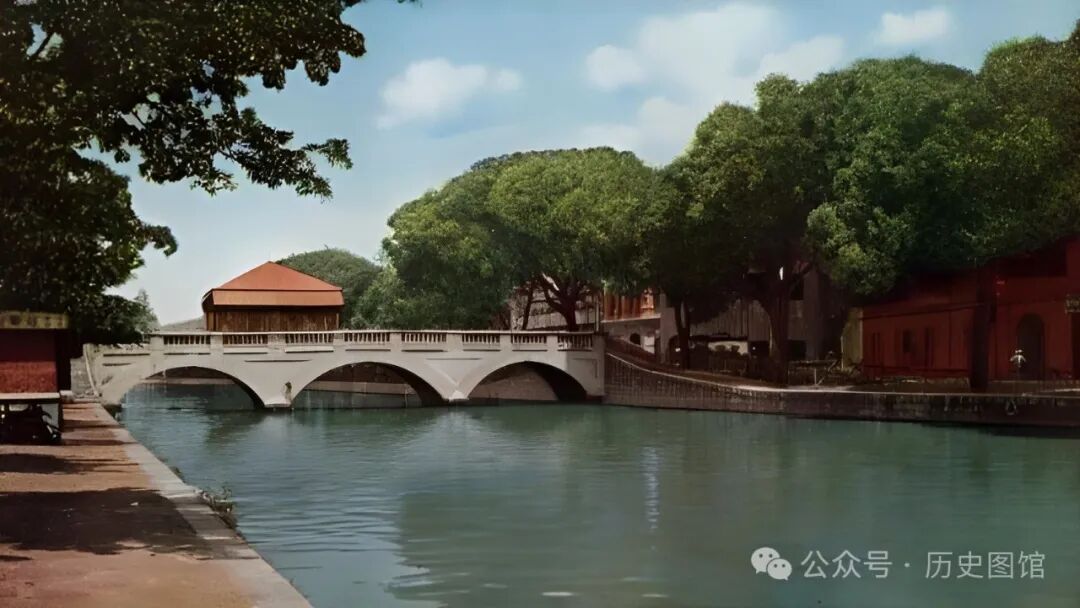 30年代,位于广州沙面租界的“西桥”,也叫英格兰桥,是一座三孔砖拱桥。该桥英国人于1861年建造,是广州最年轻的“古桥”。沙面西桥,应该算是“北桥”,是沙面北街与对岸的过河通道。