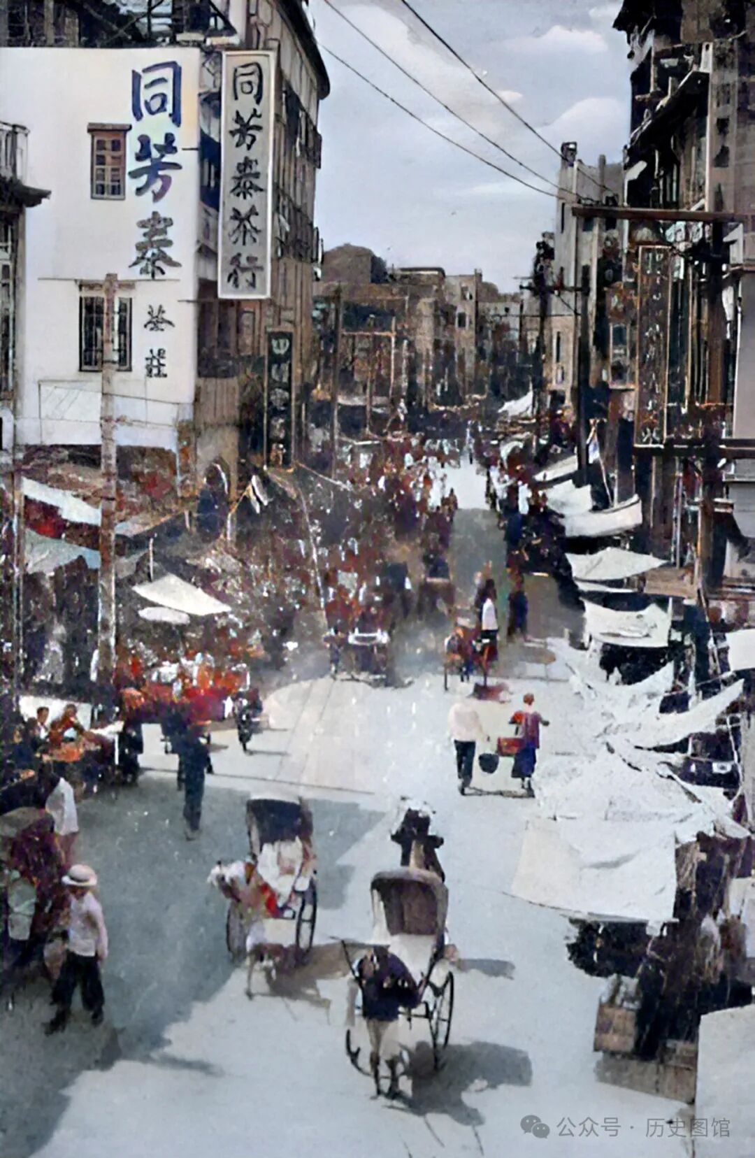 照片中这条繁华的街道,就是当时的太平路。因附近有太平桥,道路因此得名“太平路”。