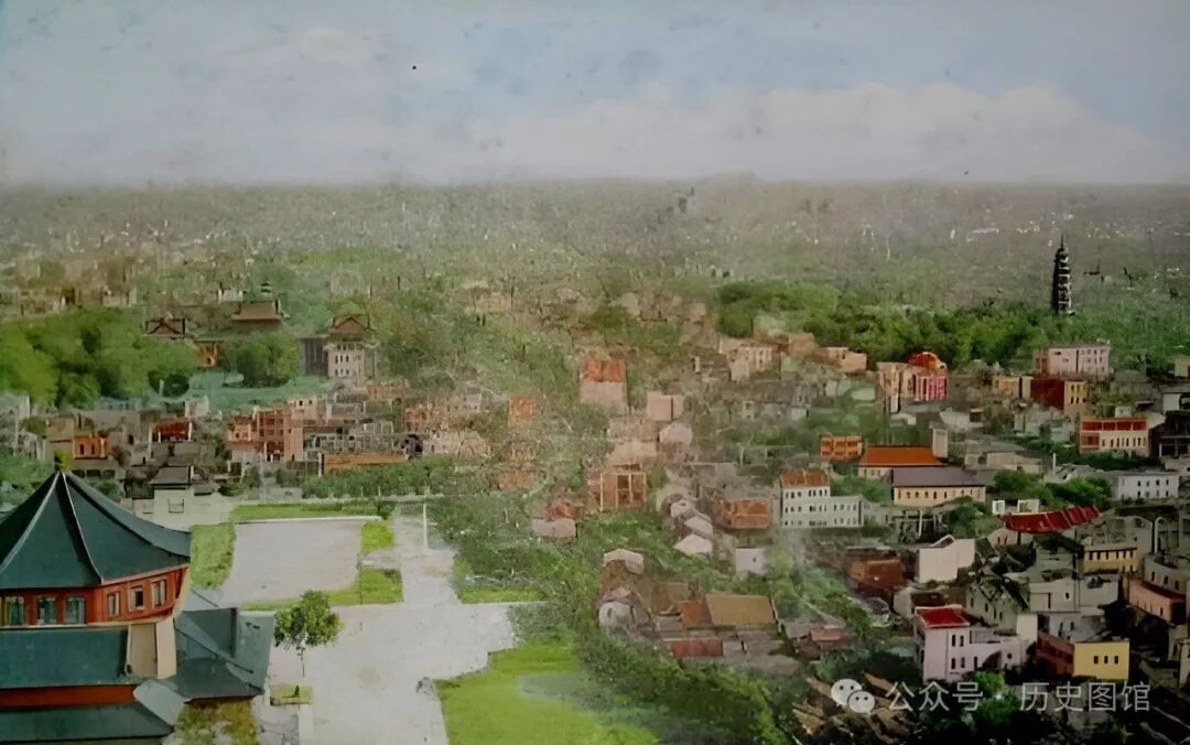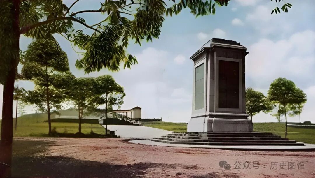 这是位于当时广州郊区的一处景观。照片中长方体立柱建筑,好像是一座纪念碑。笔者没有找到相关的文字记载,对此有了解的朋友,可以和大家分享一下。