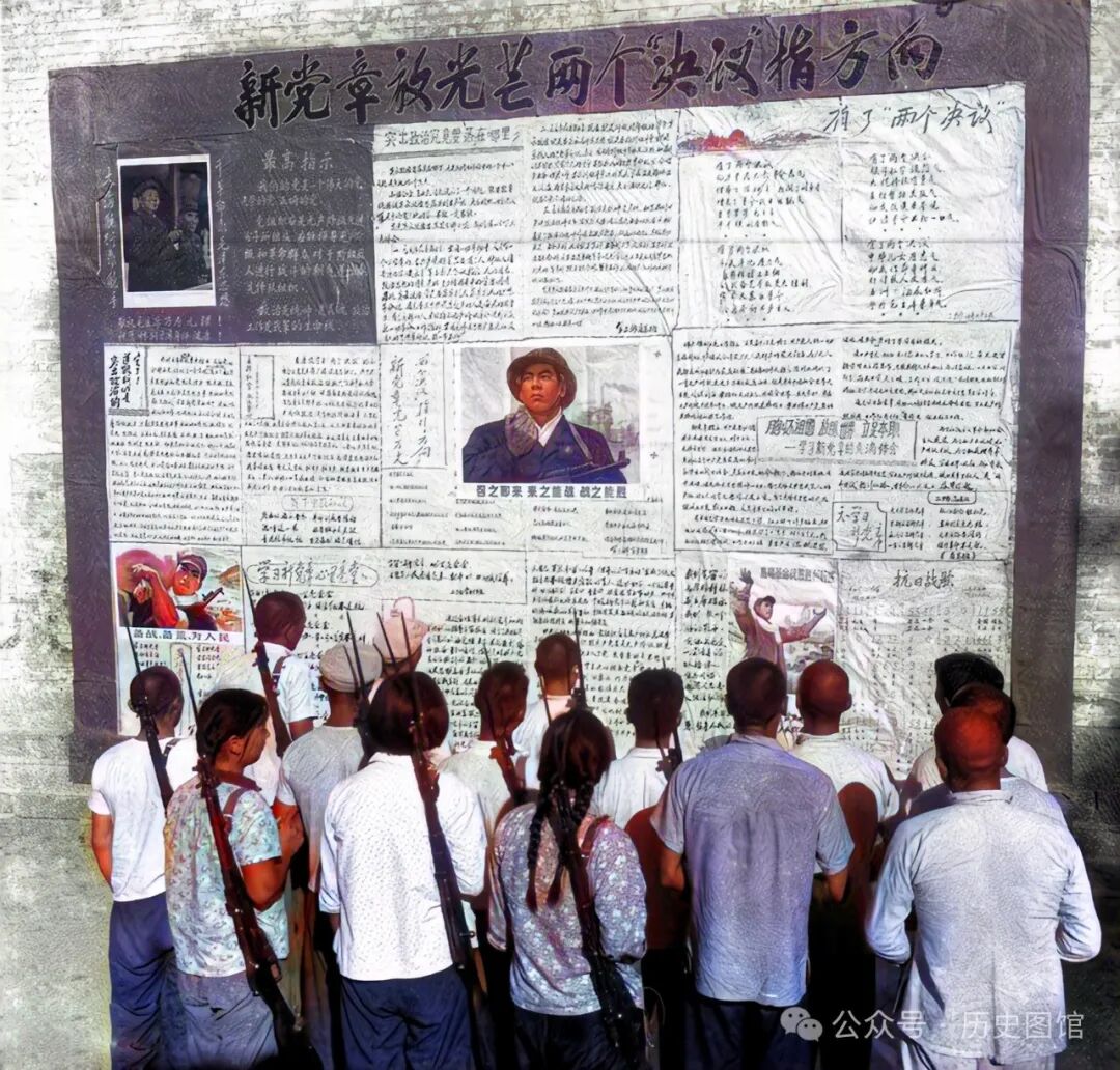 1975年,河南辉县的民兵们,在训练之余,来到村里的板报前,认真阅读和学习新党章。他们立足本职、心怀祖国、放眼世界。