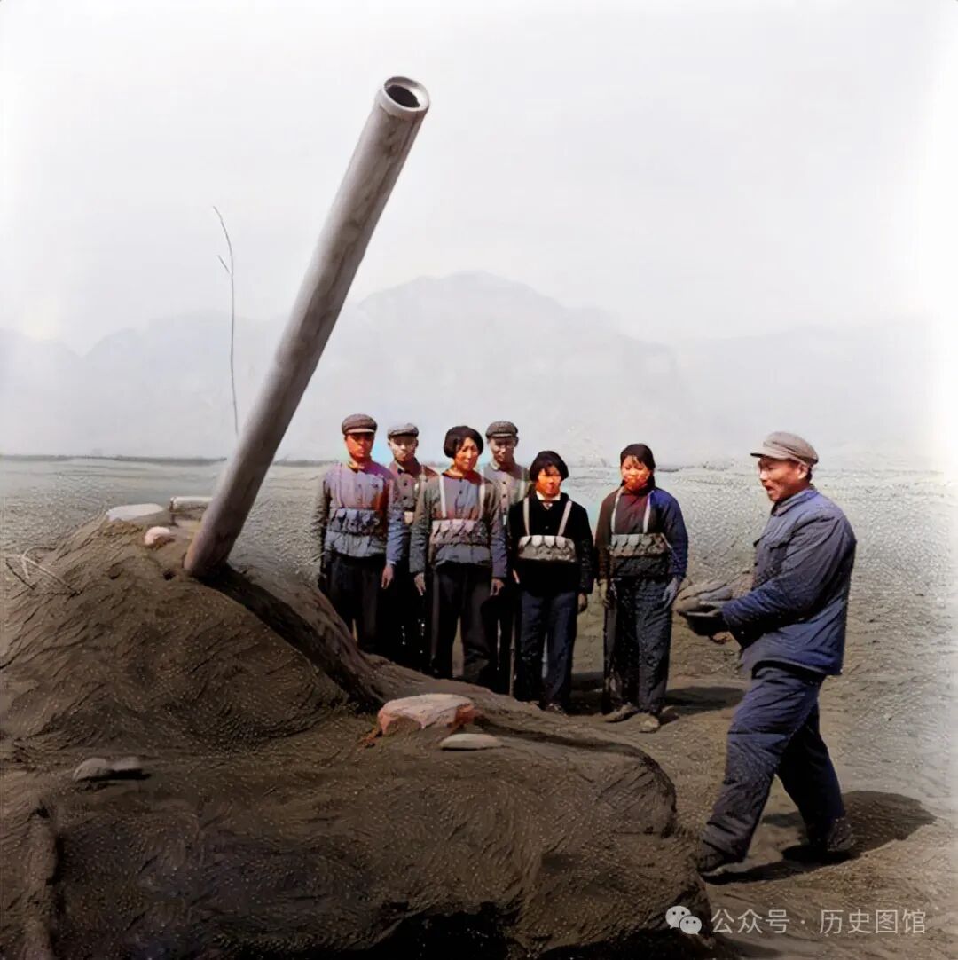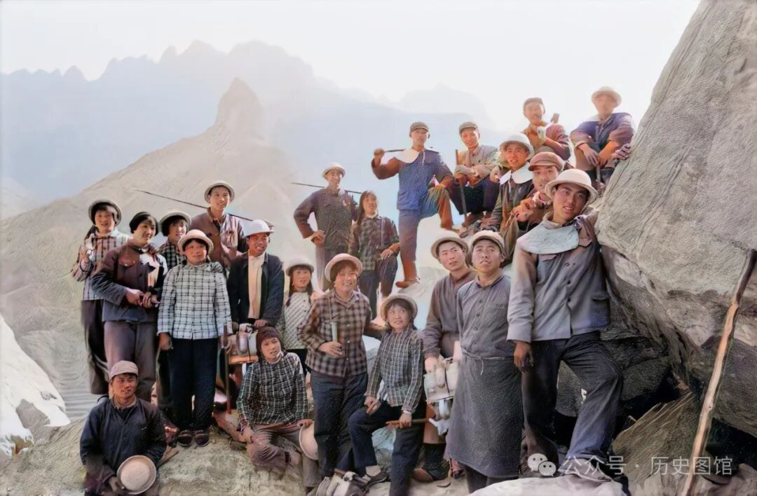 1975年,河南辉县愚公专业队和石姑娘队的队员们,在三郊口水库工地上的合影。他们中的很多人,身份也是民兵。在修建水库的工作中,永远冲在最前面。