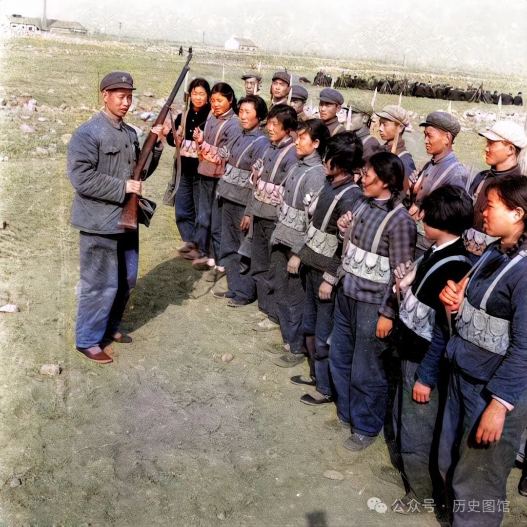 新成长起来的年轻民兵,精力充沛、斗志昂扬。尤其是站在第一排的女民兵,背着步枪,腰间挂着子弹包,看上去英姿飒爽!