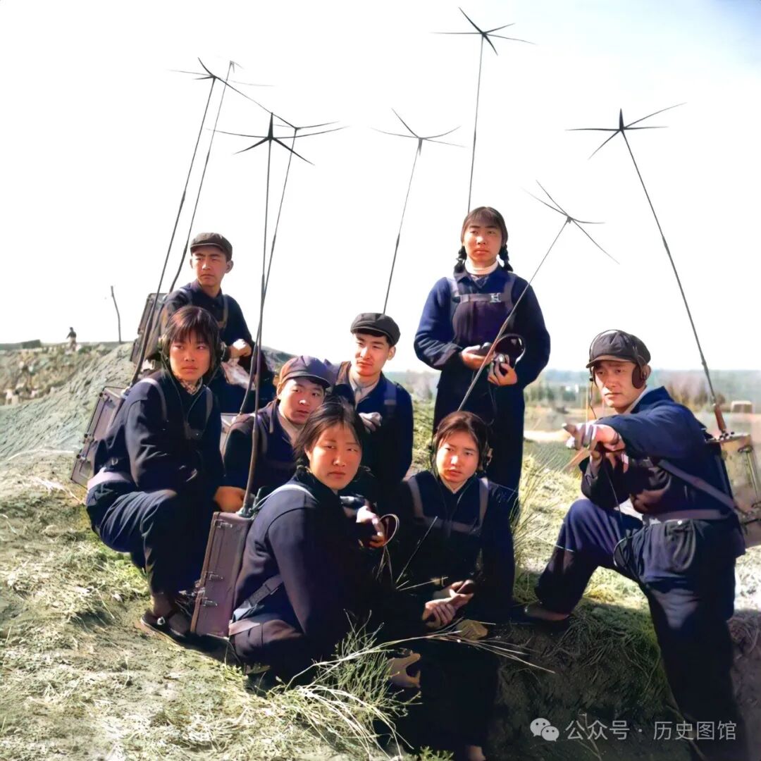 几名民兵背着无线电台,箱子上有长长的天线。看到这画面,不禁想起了《英雄儿女》中王成背的也是这种无线电台。