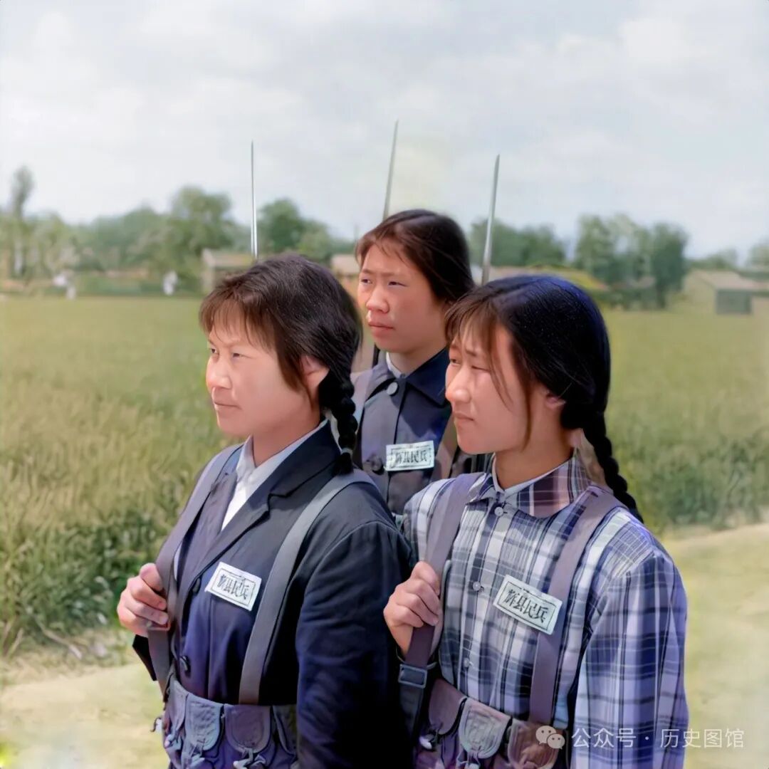 照片背景,是她们熟悉的村庄和一望无际的麦田。民兵就是要保卫家乡、战备勤务、维护社会治安。随时准备参军参战,抵抗侵略,保卫祖国。