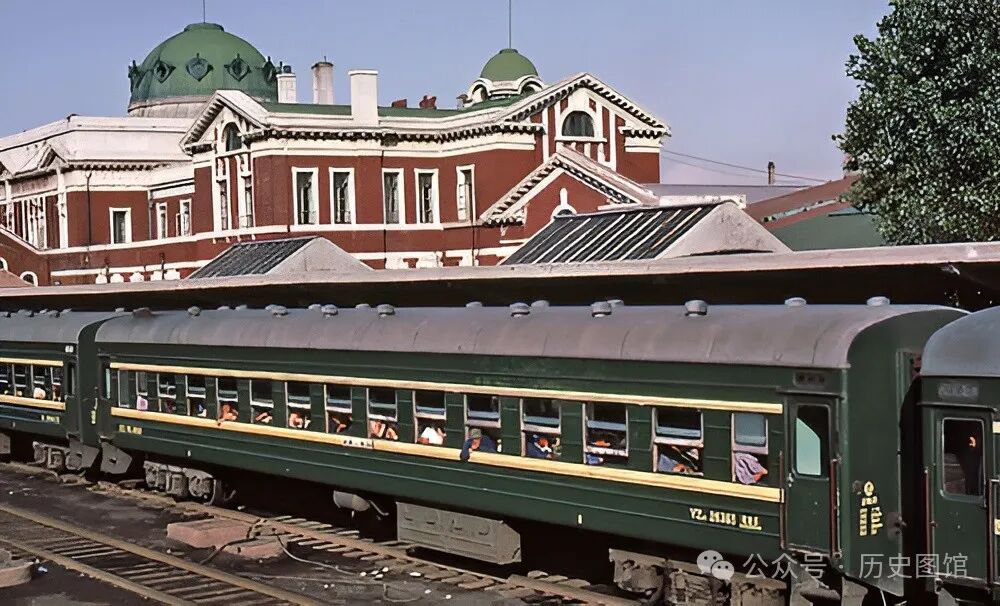 80年代,最熟悉不过的绿皮火车,停靠在沈阳站上。当时的绿皮火车,是人们出远门首选的出行方式。