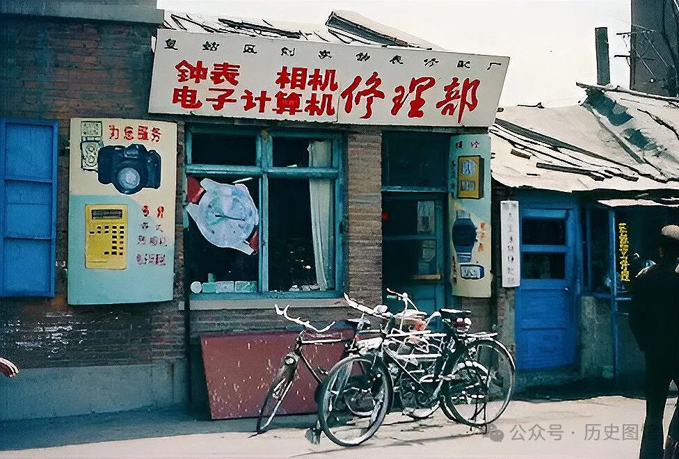 店面很小只有一间,但是服务项目不少,能修理钟表、相机、电子计算机等。门口停着几辆崭新的自行车。