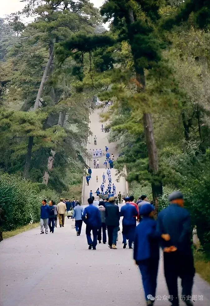 1929年,奉天政府将福陵开辟成公园。照片中,人们大多数都穿着蓝色的中山装,沿着台阶向山上走去。