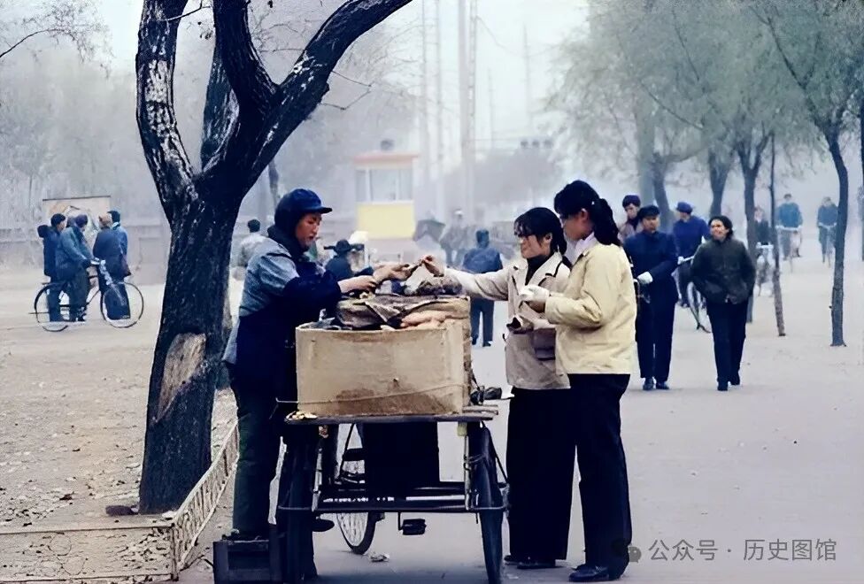 80年代的沈阳街头,一个烤红薯摊,也叫烤地瓜摊。两名年轻女子正在购买香甜可口的烤红薯。几十年过去了,现在的街头,还能看到烤地瓜摊,生意都不错。
