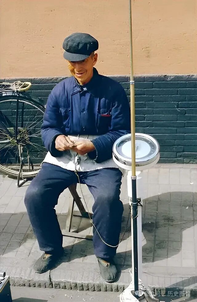 这在当时是个新鲜玩意,只要付一点钱,就可以站在上面称量自己的体重,测量自己的身高。老人是个很谨慎的人,用绳子将这台秤绑在自己腰上。