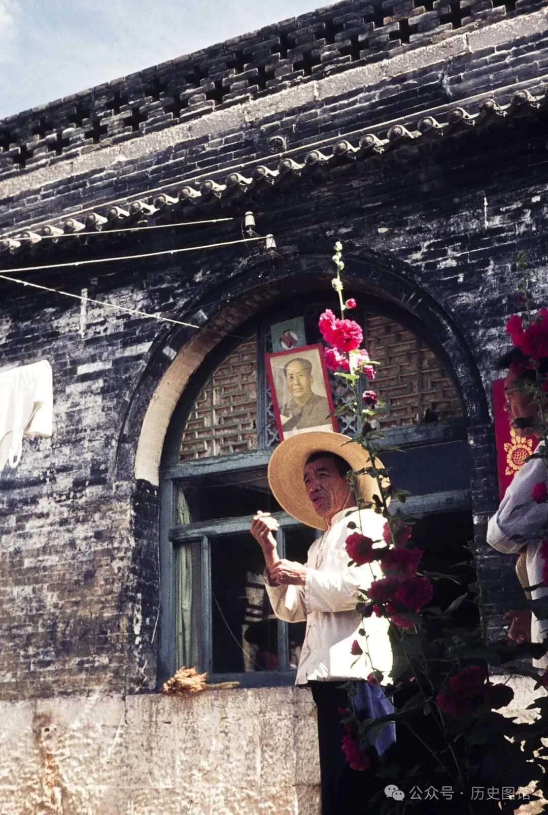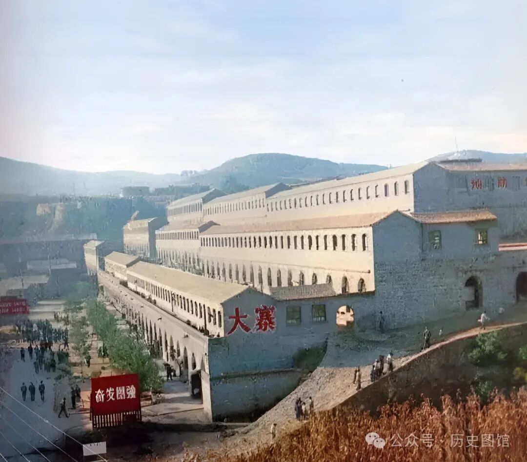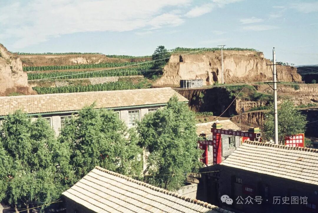 这张照片里,大寨村的居民们,住进了宽敞明亮的大瓦房。房屋依山势修建,高低错落。村中能看到巨大的红色标语墙,十分醒目。