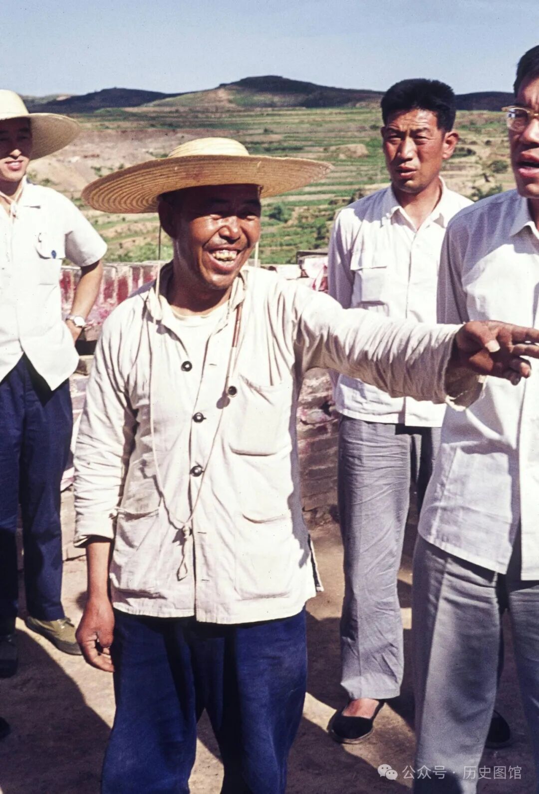 70年代,一支考察队来到大寨,当地村领导带领他们参观村容村貌和一眼望不到边的梯田。朴实的脸上露出了自豪的表情。