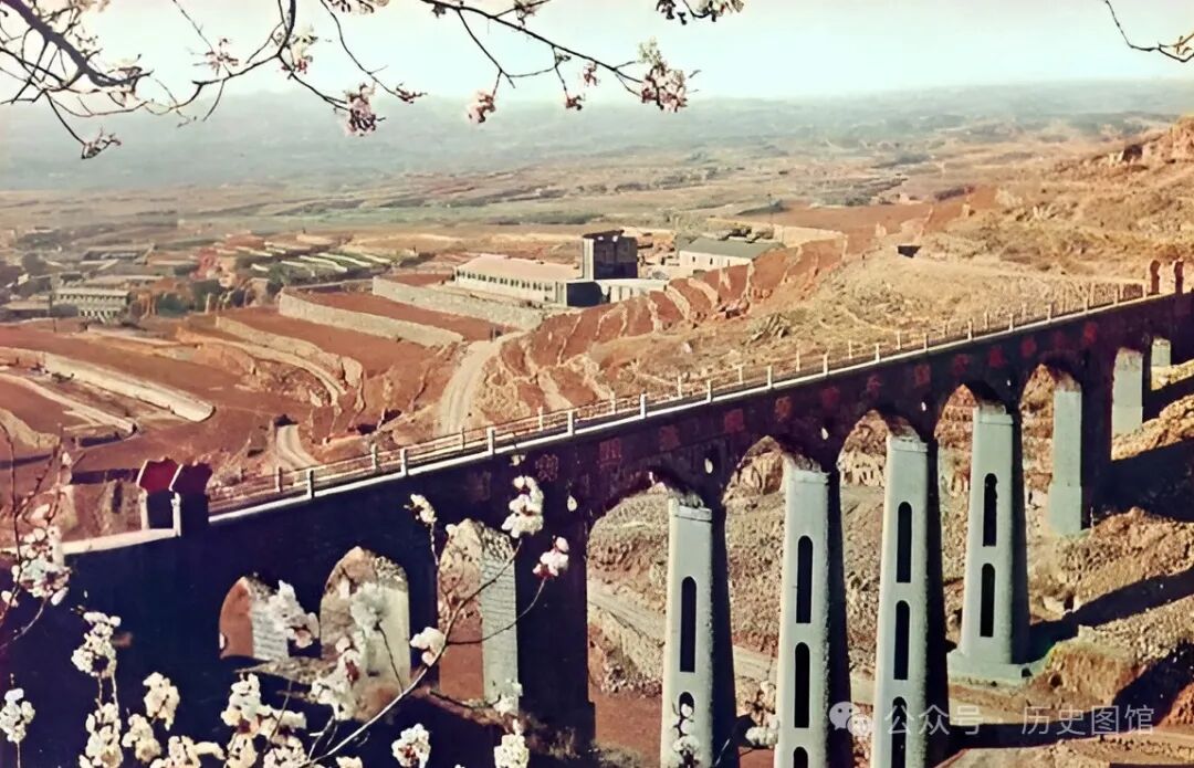 这是当时位于虎头山上的团结沟渡槽。该渡槽长120米,高度27米,修建于1974年7月。