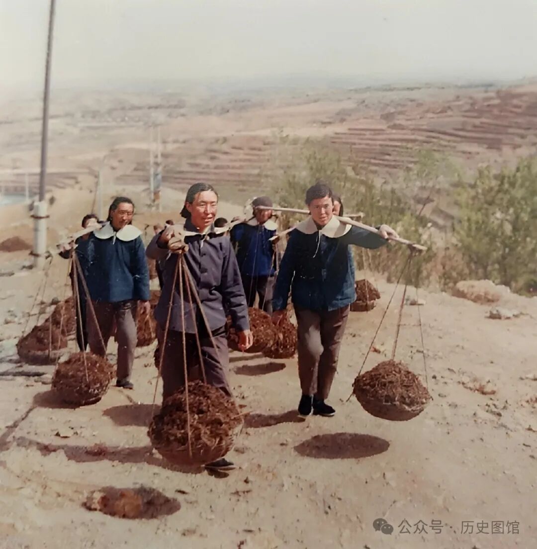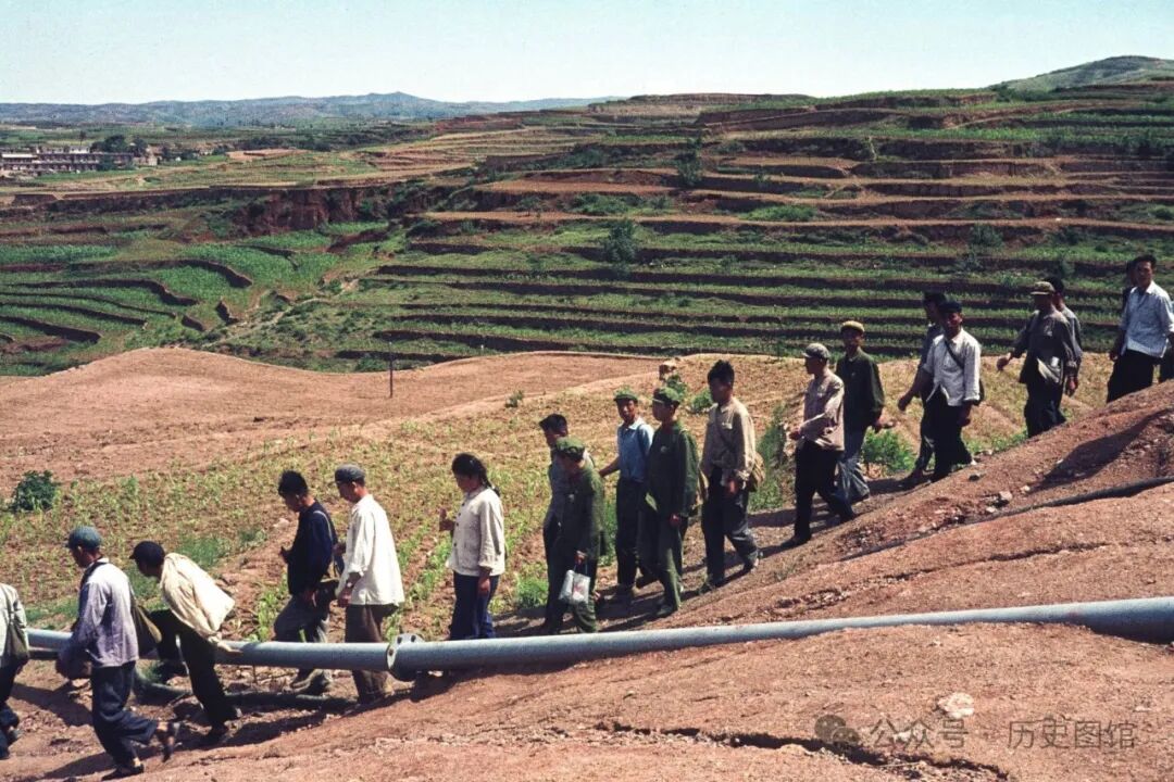 70年代,全国掀起了“农业学大寨”的高潮。照片中,很多人排着队来到大寨参观学习。他们有的穿着中山装,有的穿着绿军装。大寨先进的水利设施,一层层梯田,给参观者留下了深刻印象。