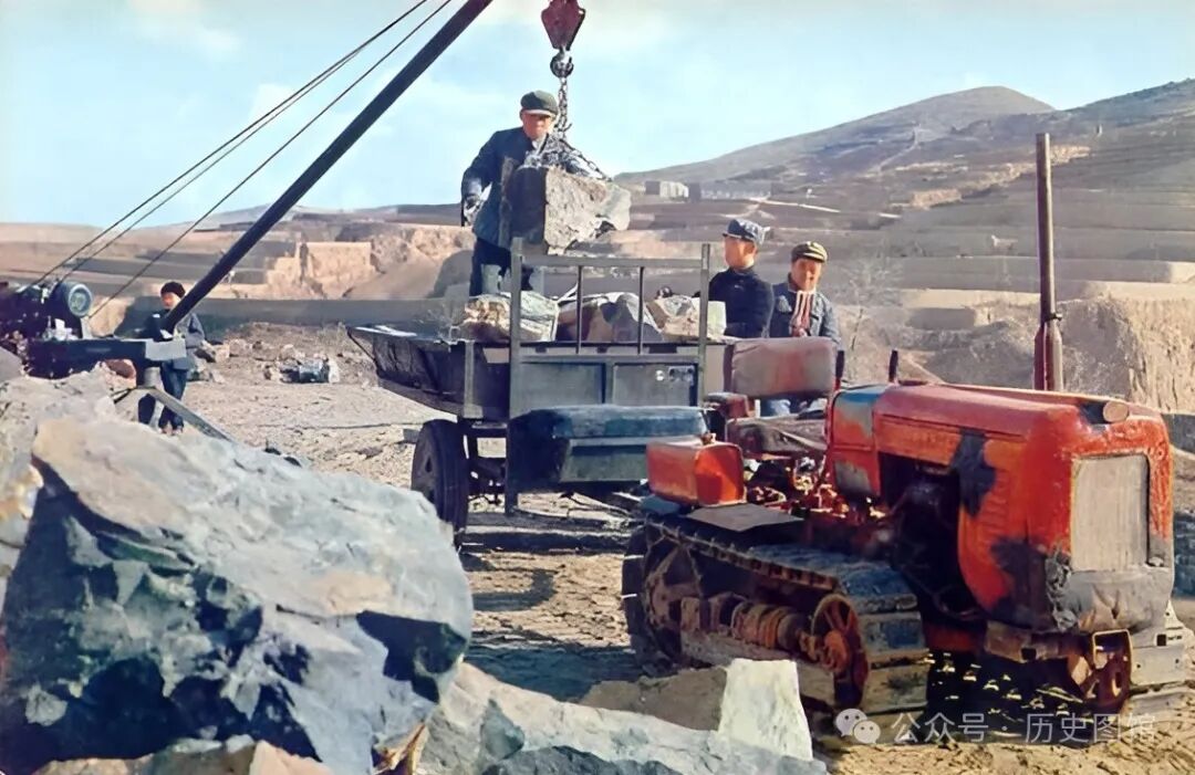 70年代,大寨生产大队的村民们,正在开山劈石,修筑梯田石坝和水利工程。山再大沟再深,治了一山少一山,治了一沟少一沟。三年不行五年,五年不行十年。