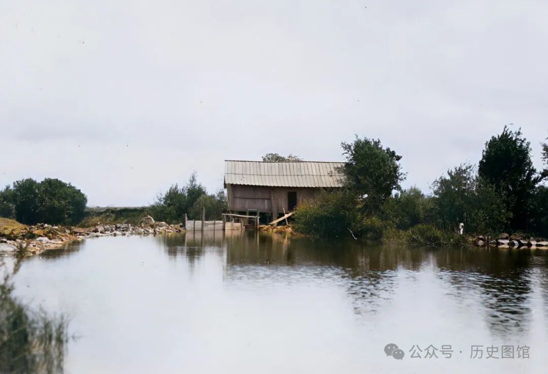 1932年,吉林敦化一条河流上,修建有一座房子。这其实是一座水磨,河道在这里变窄,利用水的落差,推动水车轮子旋转,再带动磨盘转动,就能将谷物磨成面粉。