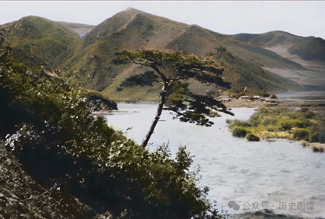 1933年,敦图铁路沿线,依兰河口附近景象,山清水秀景色很美。依兰河附近有依兰镇。