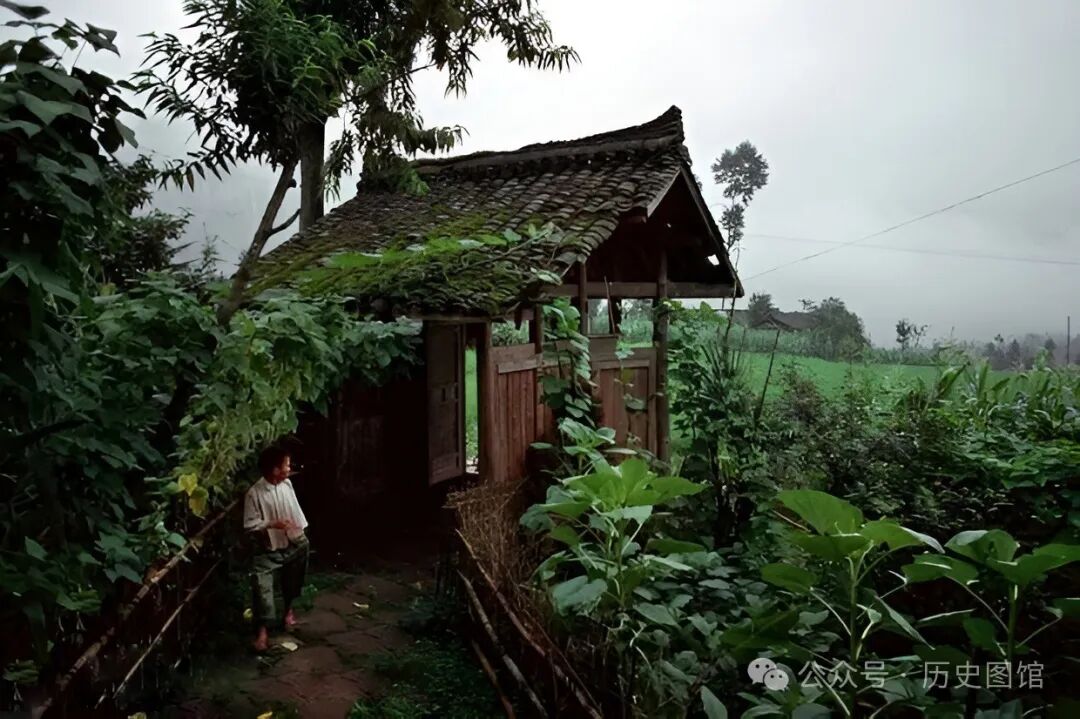 照片中好像是一座农场,位于今峨眉山市龙门乡。农场大门是传统的老式建筑,木制框架,顶部覆盖小瓦。门前道路两侧设置有栅栏,地面铺着石板。看上去古色古香。