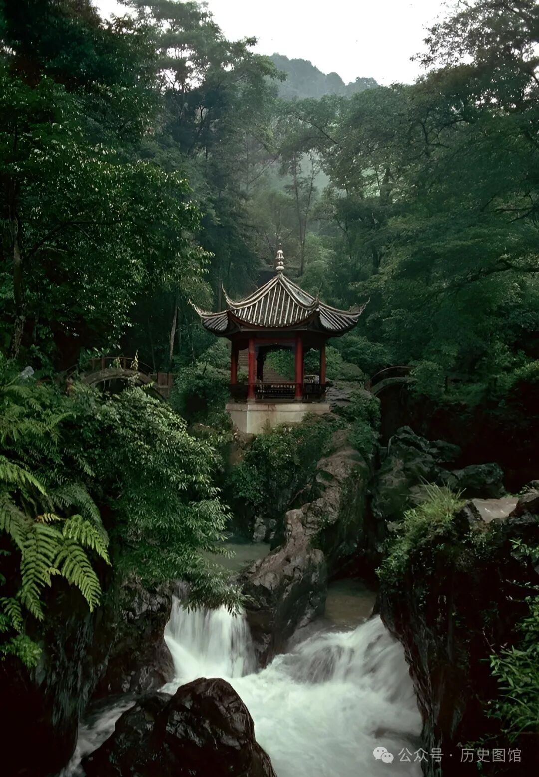 1981年,四川峨眉山风光,青山连绵不绝,山头上云雾升腾,蔚为壮观。峨眉山是中国佛教四大名山之一。山上寺庙主要有万年寺、报国寺、伏虎寺、善觉寺、光相寺等。