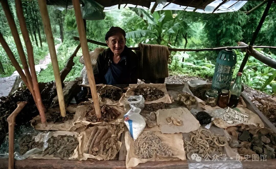 在前往峨眉山的小路边,一位老大爷正在树荫下摆摊。摊位上摆放着各种中草药。这些都是他平日里上山采来的。有不少去峨眉山的游客,会在他摊位上买一些中草药。
