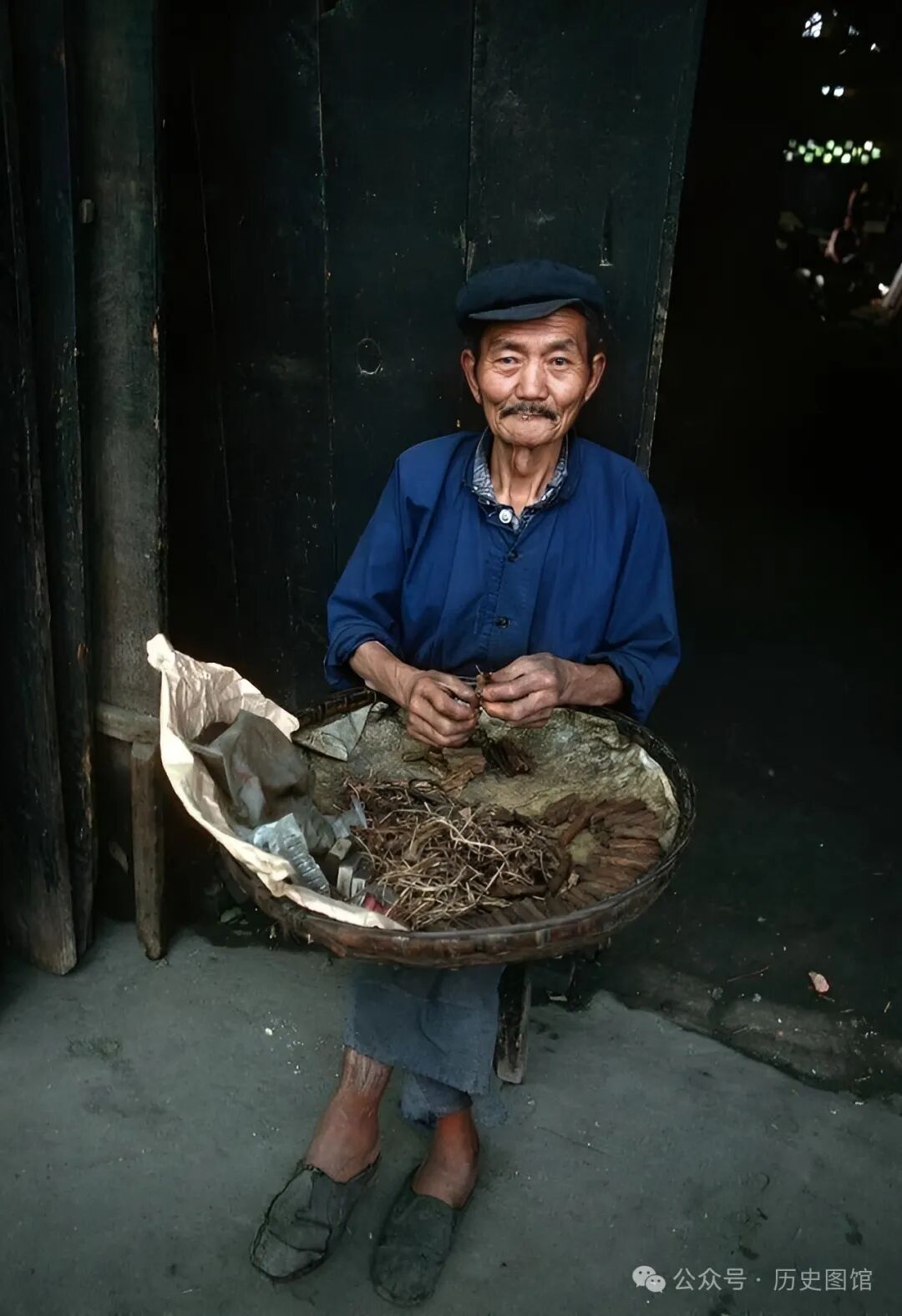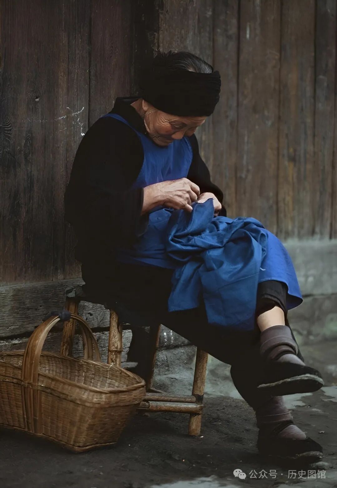 1981年,一位老奶奶,正在认真地做针线活。她坐在竹椅上,旁边的地上放着一个竹篮,里面装的是针头线脑。仔细看,这位老奶奶裹着小脚。