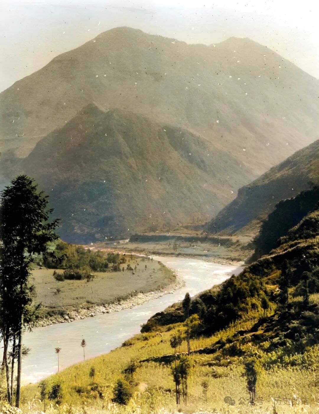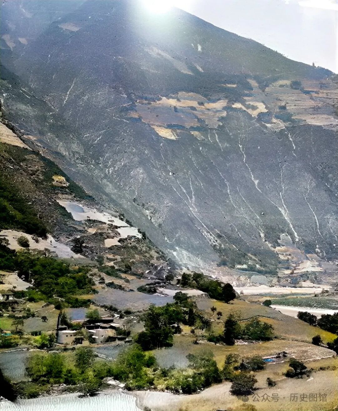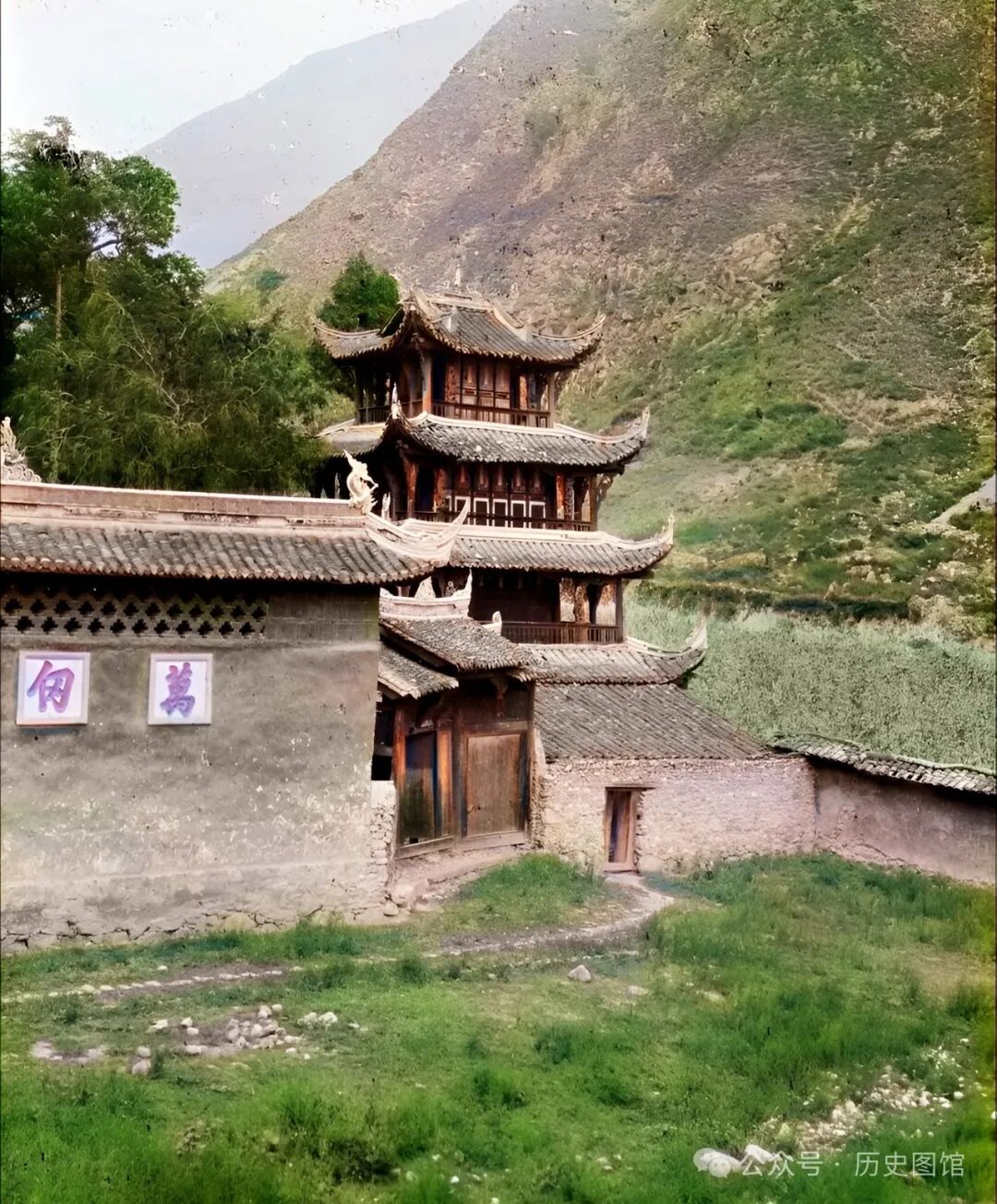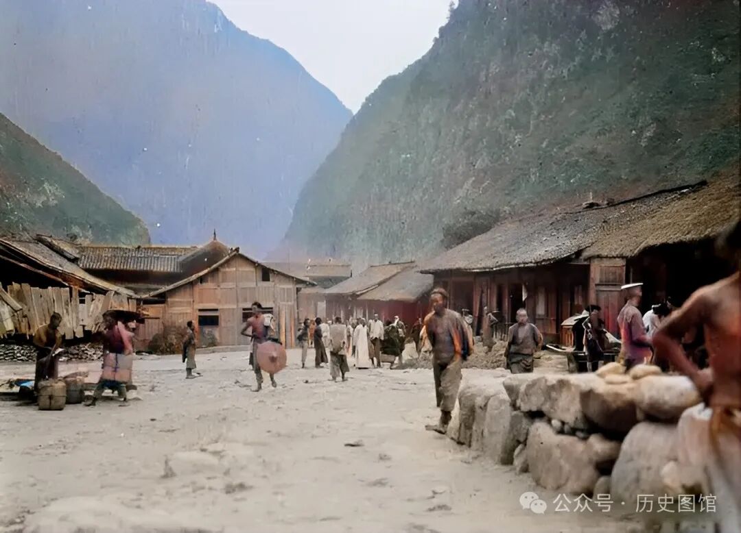 下面就挑选其中二十几张老照片(原片是黑白照,上色修复了清晰度),共同感受100多年前汶川的壮美风光。一定会让你惊讶:过去的汶川原来这么美!