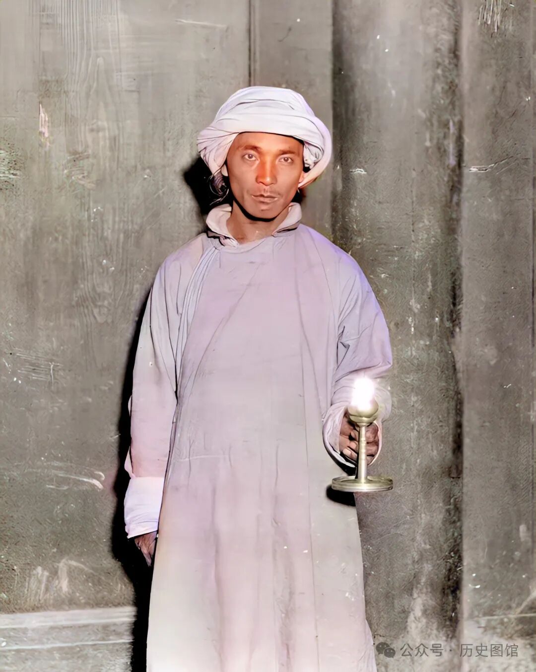 这是摄影师聘请的一个向导。他身体强壮,穿戴着民族传统服装和头巾。因为是土生土长的本地人,他对当地的地形和道路十分熟悉。在村寨内一堵石墙前,摄影师为他拍下了这张照片。面对镜头,他脸上露出一丝羞涩的表情。