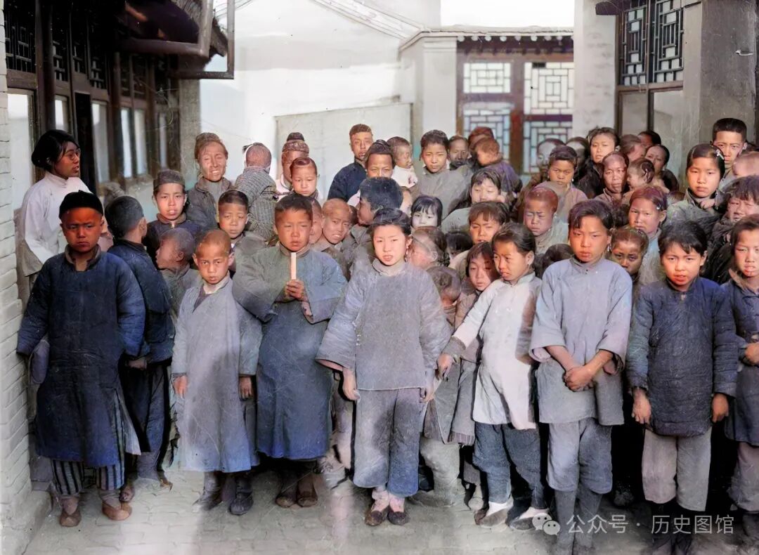 100多年前,北京一家教会诊所门前,聚集着很多孩子,他们都是来这里接受体检的。除了这些孩子,还有一些怀抱婴儿的母亲。