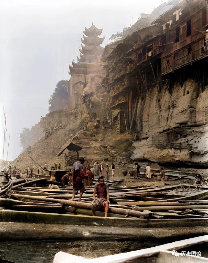 1917年,甘博来到了重庆江边的一个码头,从江岸上下来,有几十级台阶。