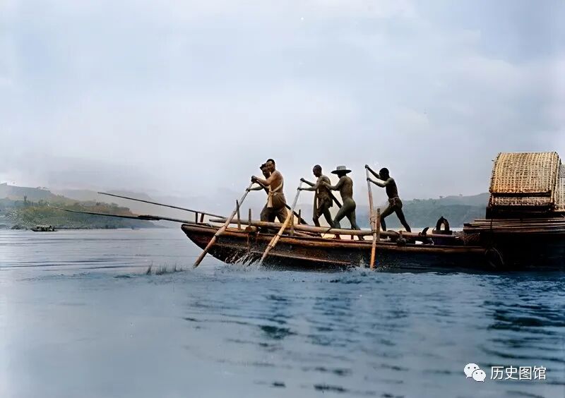 1917年,甘博乘船逆流而上,来到重庆三峡涪陵县。在那里,他看到了江面上正在卖力划船的桡夫子,他们有的直接没有穿衣服。