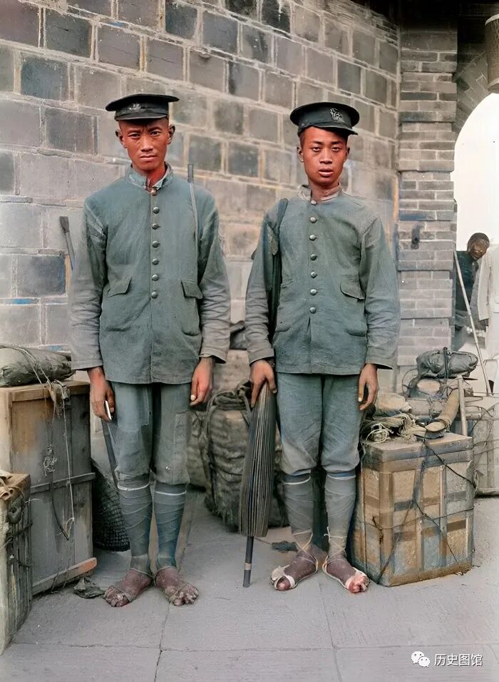 在一座建筑前,甘博为这两名士兵拍下了这张照片,作为留念。