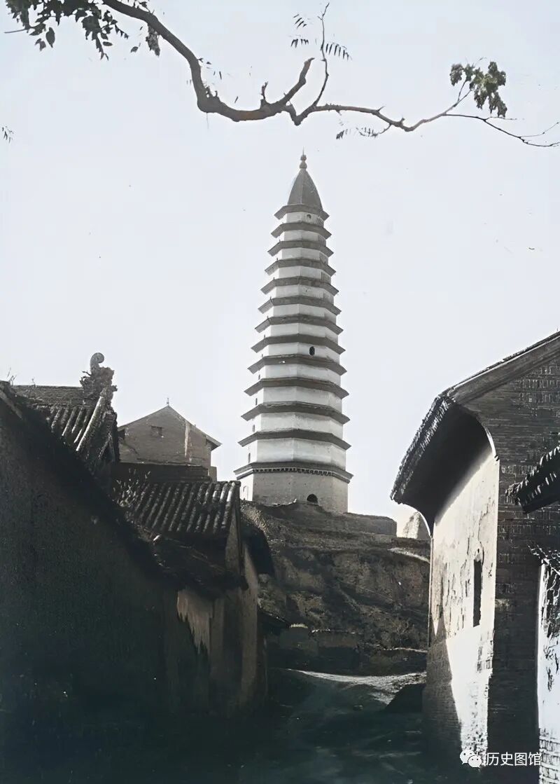 这张照片拍摄于绛州城内,在一座高崖之上,有一座明代寺院龙兴寺,寺院古朴高雅,始建于唐代。寺院内矗立着一座古塔叫龙兴塔。后来龙兴寺被毁,只留下了龙兴塔。塔身修长,有十几层。这座高塔,是绛州城的标志性建筑。80年代,龙兴寺复建,恢复了昔日的风采。