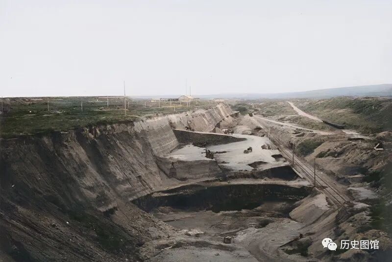 30年代,位于满洲里附近的扎赉诺尔煤矿。从地上挖出的深坑看,这应该是一座露天煤矿。30年代,日本对扎赉诺尔煤矿进行了疯狂的掠夺。扎赉诺尔煤矿是一座百年煤矿,主要出产褐煤。