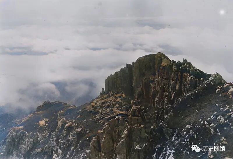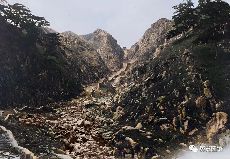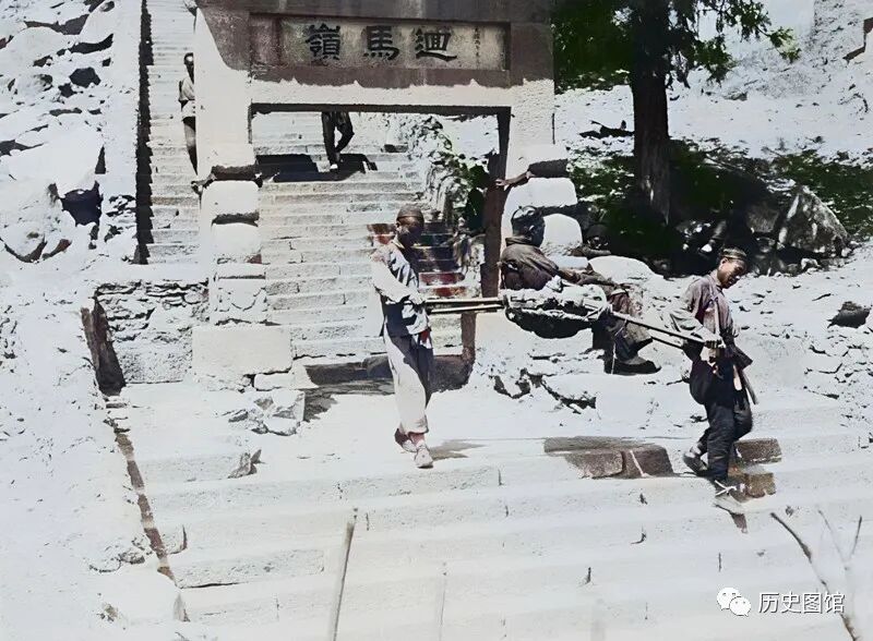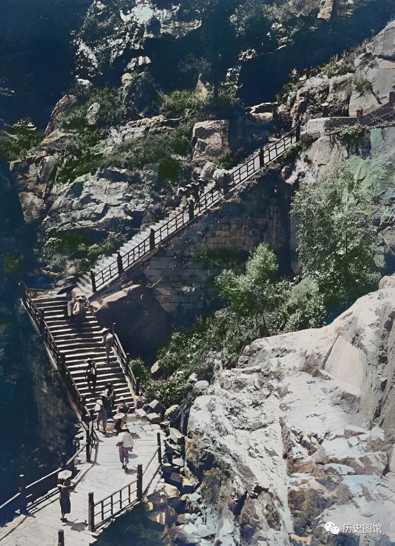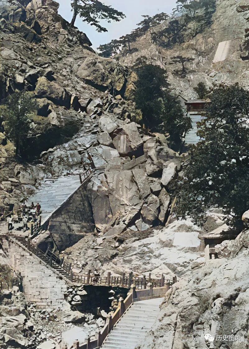1931年的泰山南天门老照片。南天门,始建于元中统五年(1264年)。城门高大雄伟,为阁楼式建筑。题额“南天门”三个大字。门口