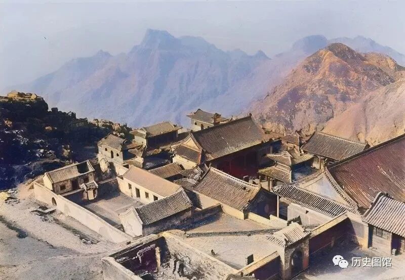 这是站在山顶上俯瞰碧霞祠全貌。碧霞祠始建于宋真宗时期(1009年),原名叫昭真祠。从照片中可以看出,当时的碧霞祠建筑规模宏大,布局严谨,错落有致。