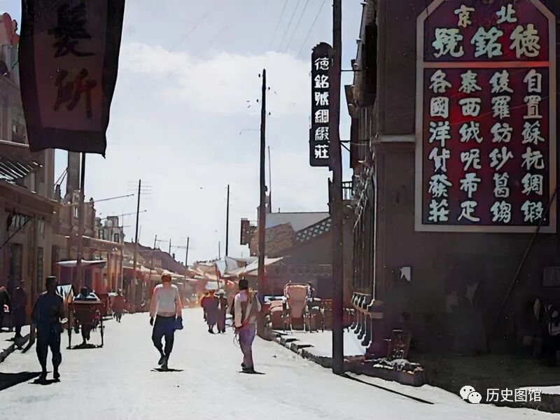 街道上,行人来往穿梭,还能看到黄包车师傅拉着车子奔跑的身影。