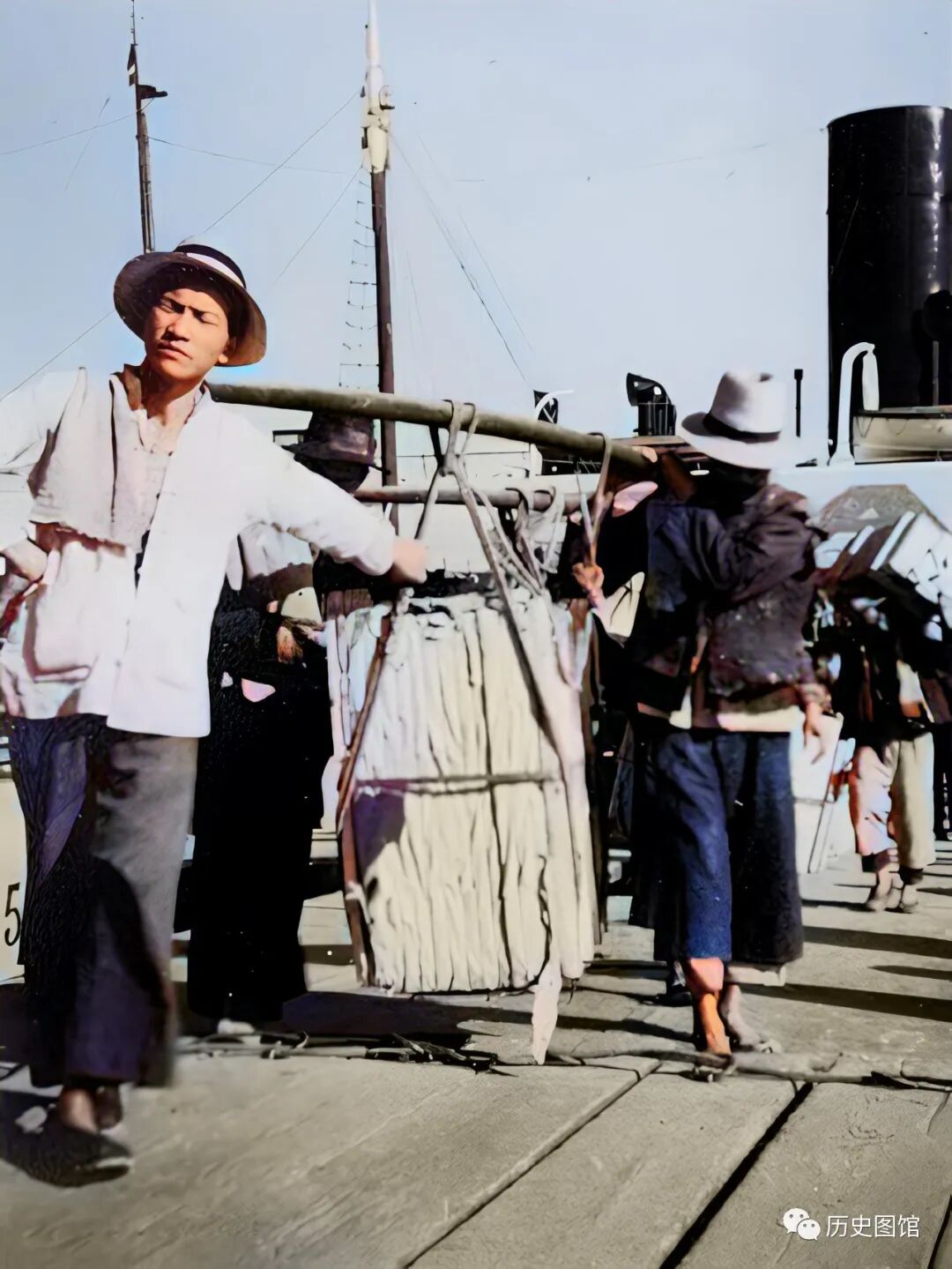 汉口码头上,每当货船靠岸,都会雇佣搬运工把货物从船上搬运下来,搬运工付出劳动,就能获得一些报酬。虽然这是一种繁重的体力活,但也能养家糊口。从这一点看,30年代武汉的航运业是何其的发达。