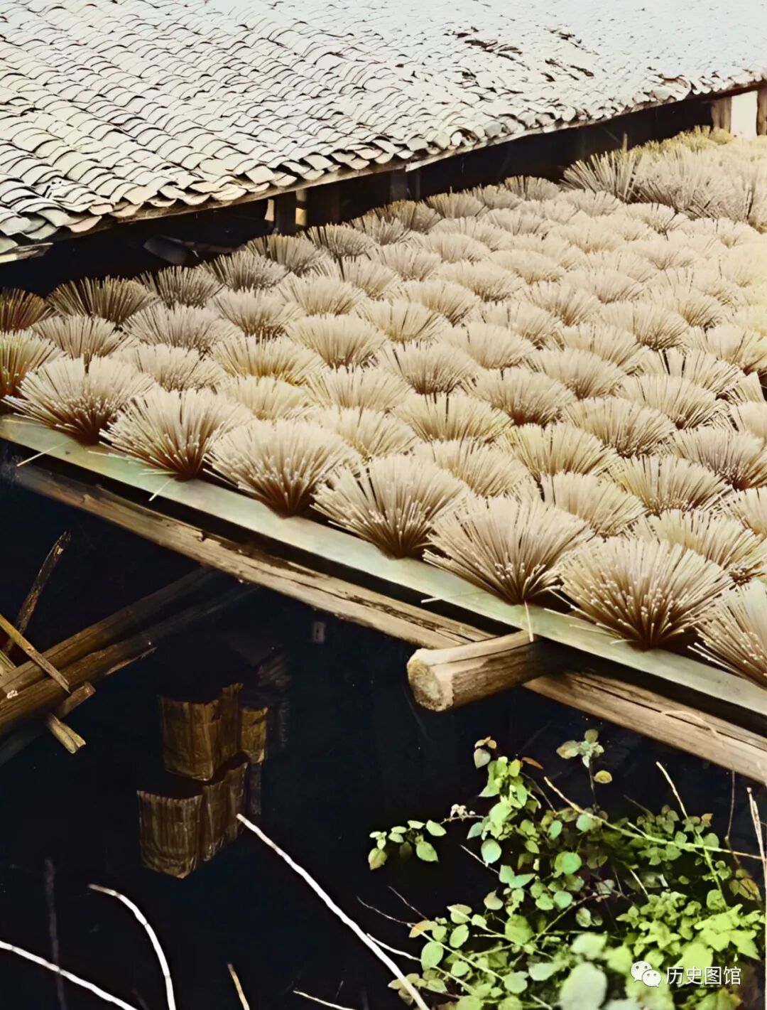 30年代,武汉一家传统制香作坊,将制作好的香晾晒在架子上。当时,香铺或作坊多设在寺庙、集市附近。