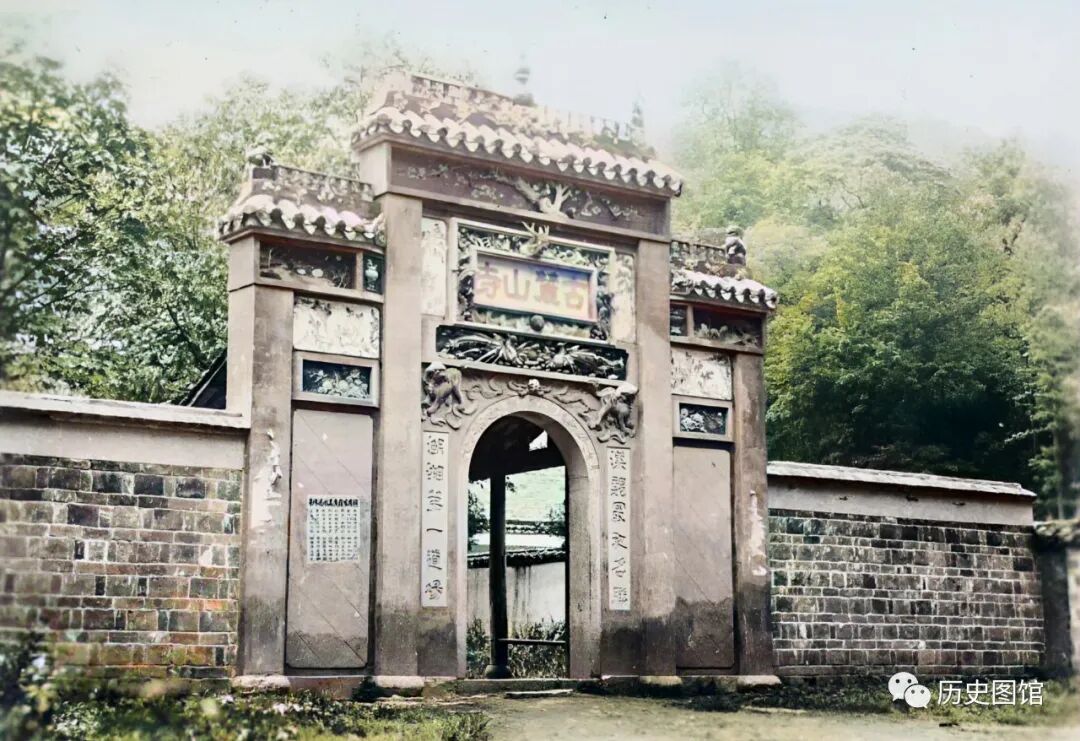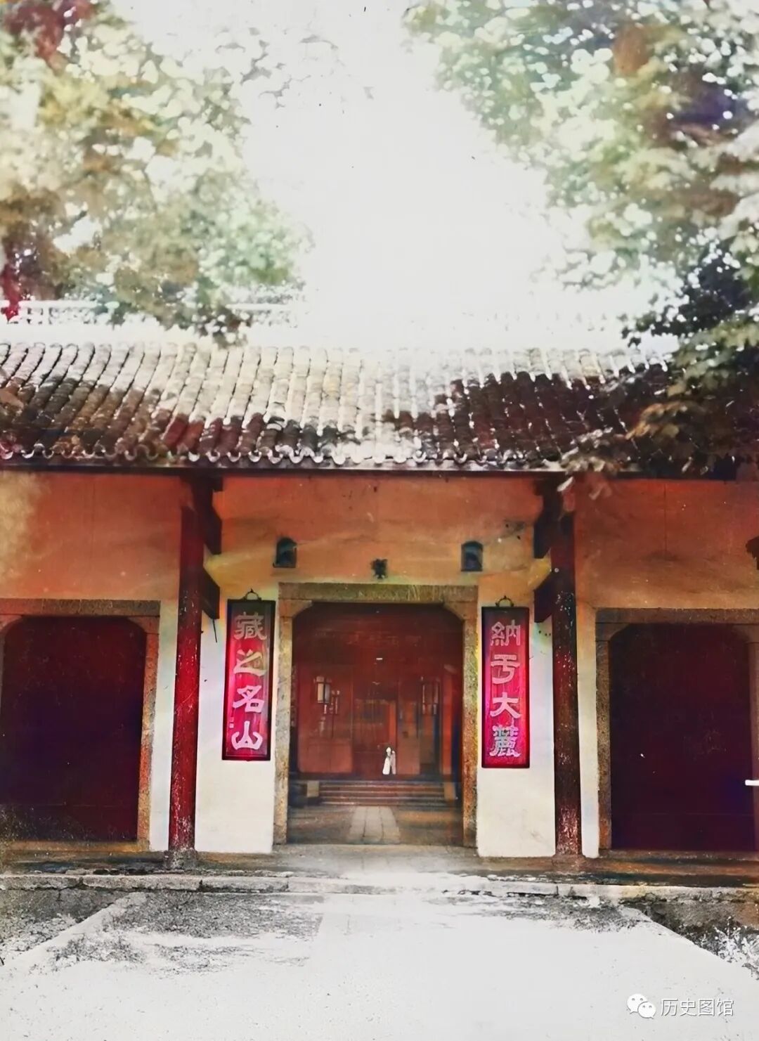 30年代,岳麓书院二门前的场景。此门在明嘉靖元年(1527年)扩建文庙时修建。门口一副对联:纳于大麓,藏之名山。当时门楣上还没有悬挂匾额“名山坛席”。