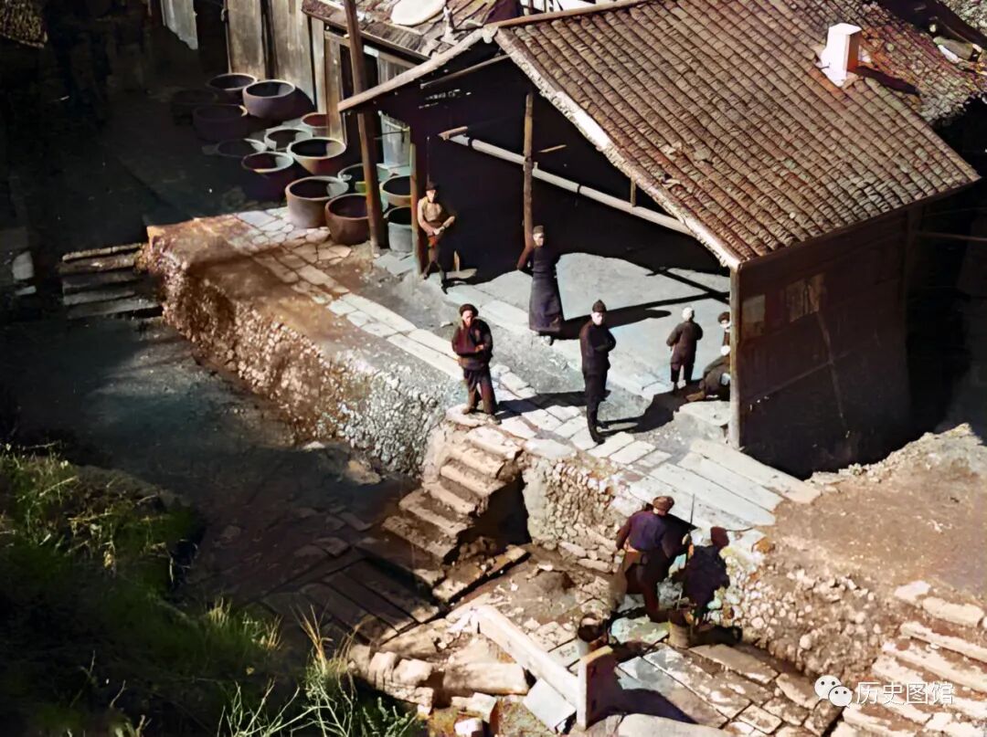 这是当地一座大染坊,建在高台之上,门口摆放着一些大染缸,却没有了往日的繁忙景象。