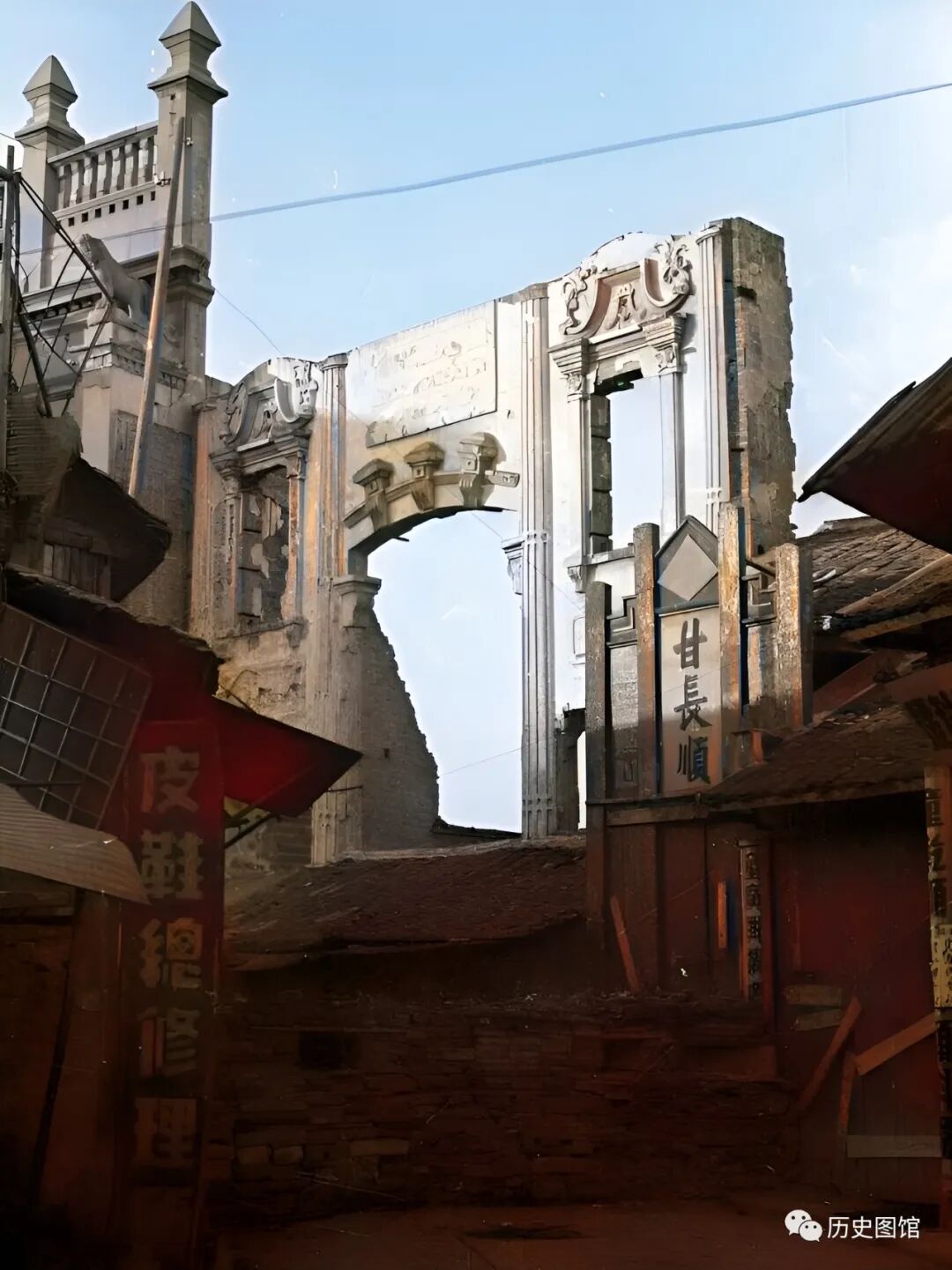 街道上断壁残垣,沿街店铺人去楼空,只剩下广告牌子。战火洗礼下的长沙,也付出了巨大的牺牲。