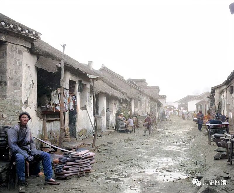 这是当时南京城内一条古老的小街。街道不宽,地面上铺着青石板。街道两旁的建筑都是中国传统建筑,古色古香。