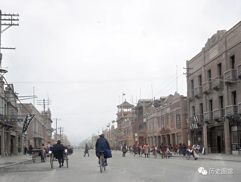 街道上,行人来往穿梭。有骑自行车的,有拉洋车的,还有步行逛街的。虽然从照片上分辨不出是哪条街道,但是足以看出当时南京的繁华程度。