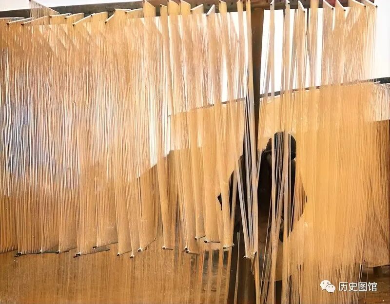这是一家面条作坊,工人们正把制作好的细面条挂在架子上,进行晾晒。等面条干燥后就成为了优质的挂面。然后切成整齐的小段,便于包装。挂面是我国传统美食,始创于汉代。