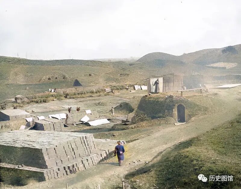 这是位于南京郊外的一座砖窑厂,工人们正在紧张地劳动。他们分工明确,有的挖土,有的制坯,有的烧窑。