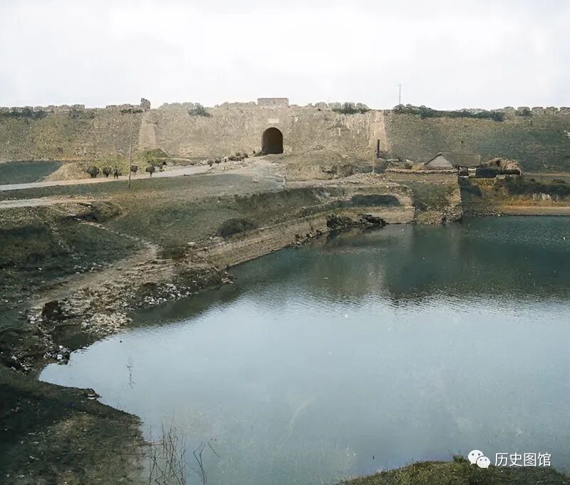 城门外,有一条主干道,一些百姓背着货物正在进城。路基两侧是废弃的护城河,河水清澈。如今,南京城墙为全国重点文物保护单位。