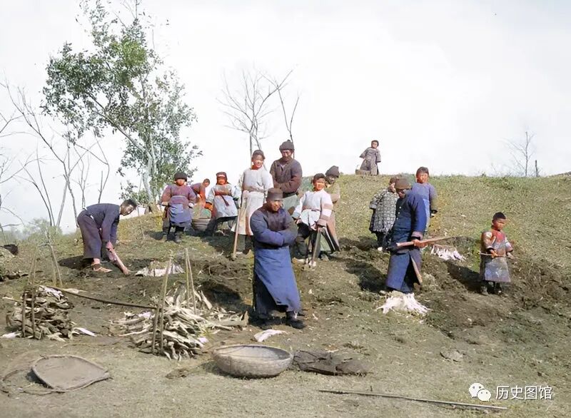 冬季的南京,十分寒冷。在城外的一处土岗上,一些百姓正在挖树根。他们用工具把砍伐后的大树的树根挖出来,劈成小块晒干,就能当作烧火做饭取暖的最佳材料。一些小孩提着篮子,在附近拾柴禾。