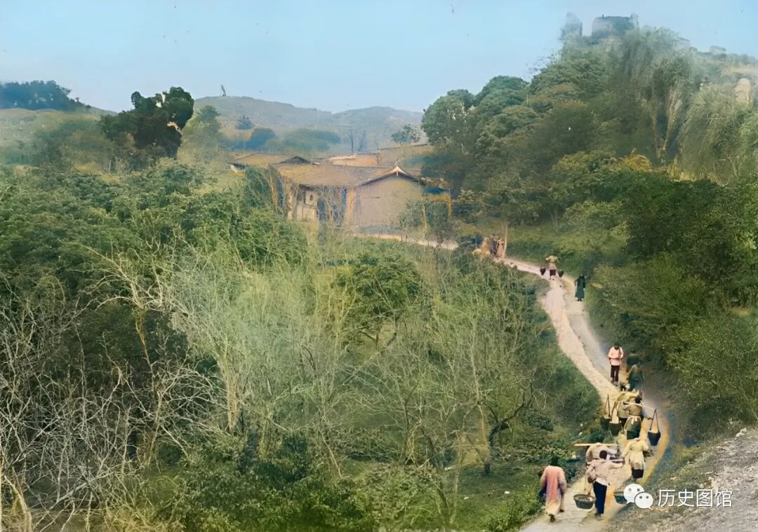 这张照片拍摄于1929年,这是福州南郊野外的一条山间小路,小路随着山势蜿蜒曲折,很多人挑着担子通过这条路进城。