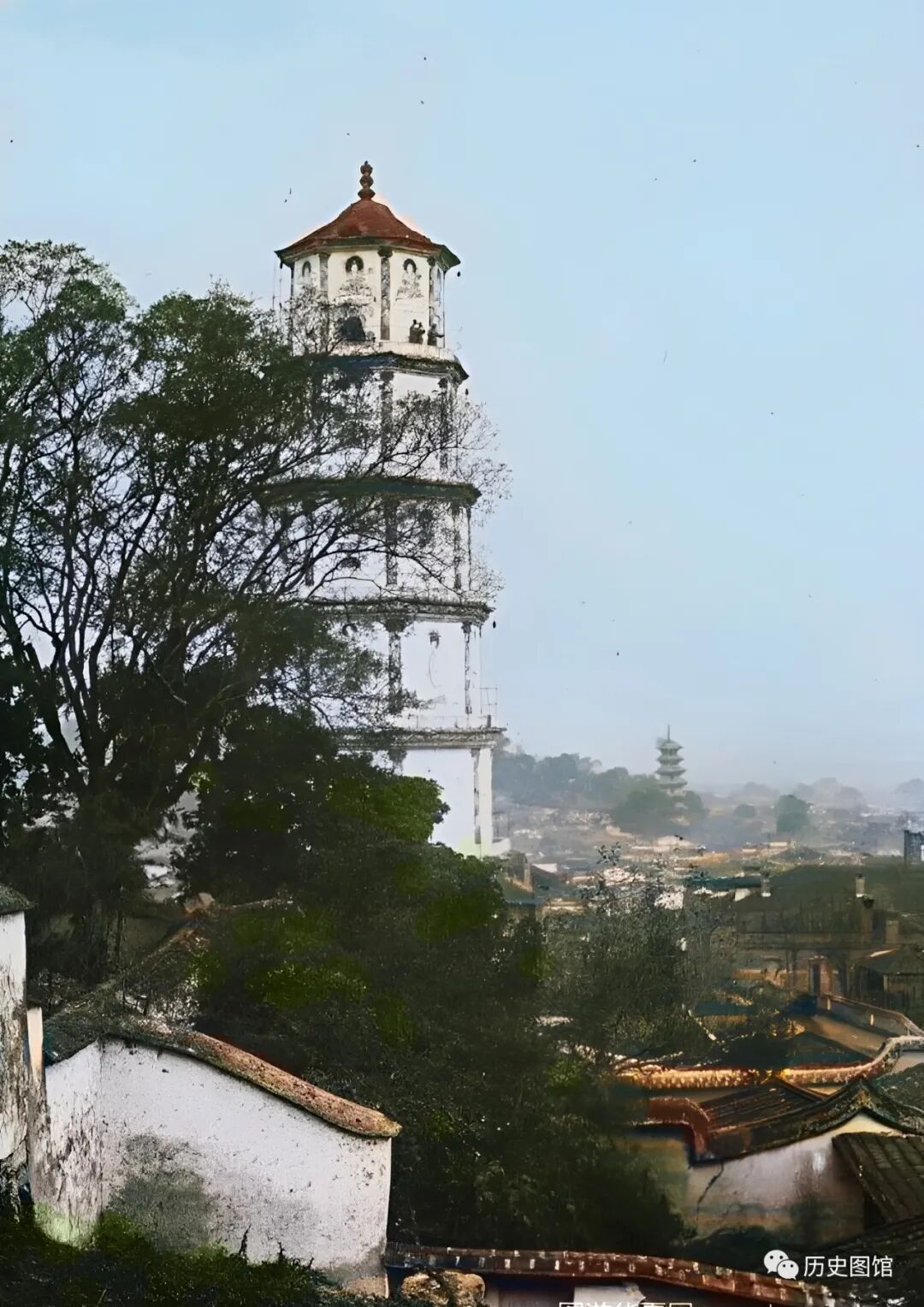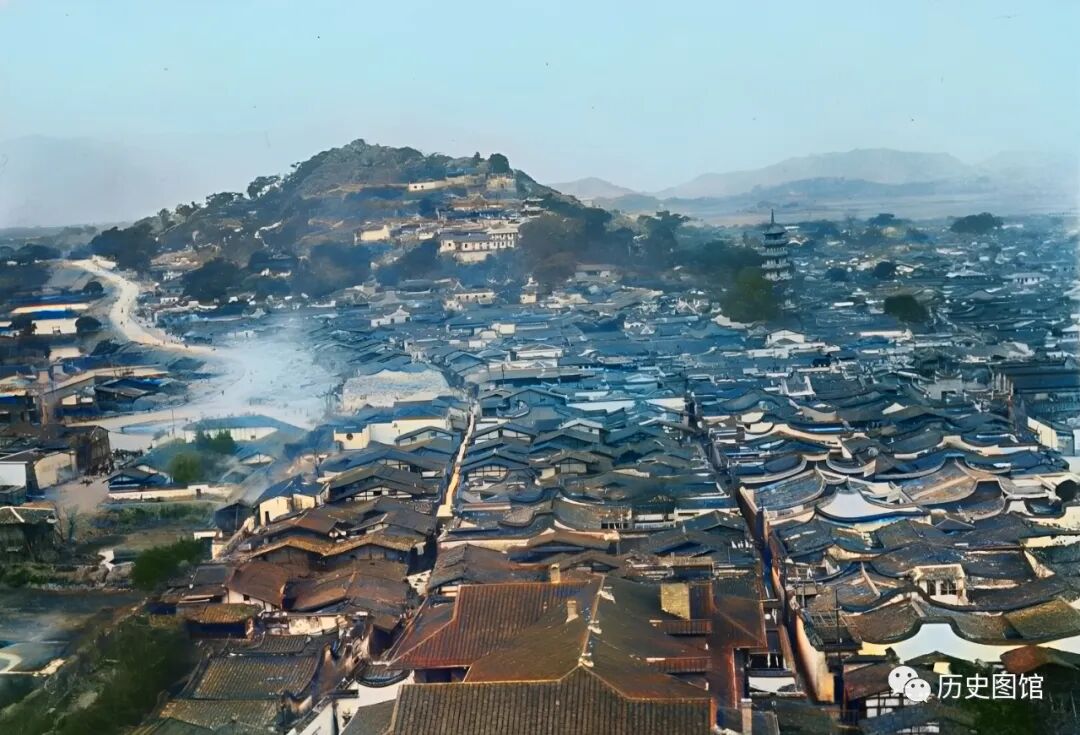 这是当时福州的鸟瞰图,拍摄于1929年。福州的传统民居处处体现着浓郁的江南特色,粉墙黛瓦,炊烟袅袅。远处一座古塔,让古城增添了历史的厚重感。