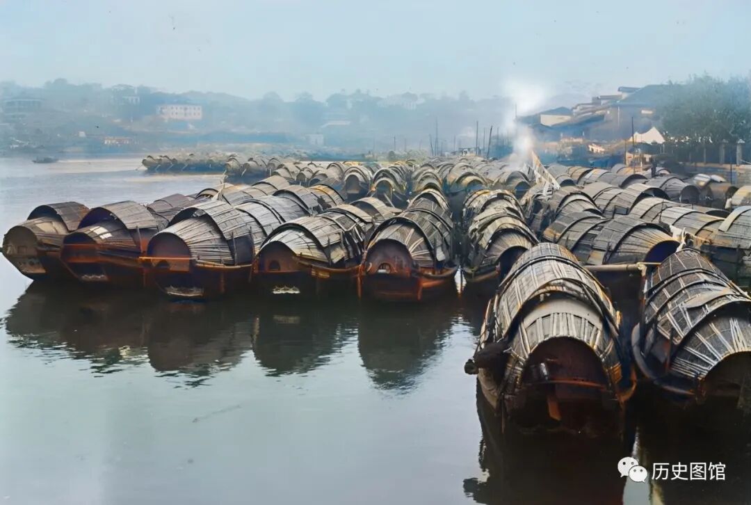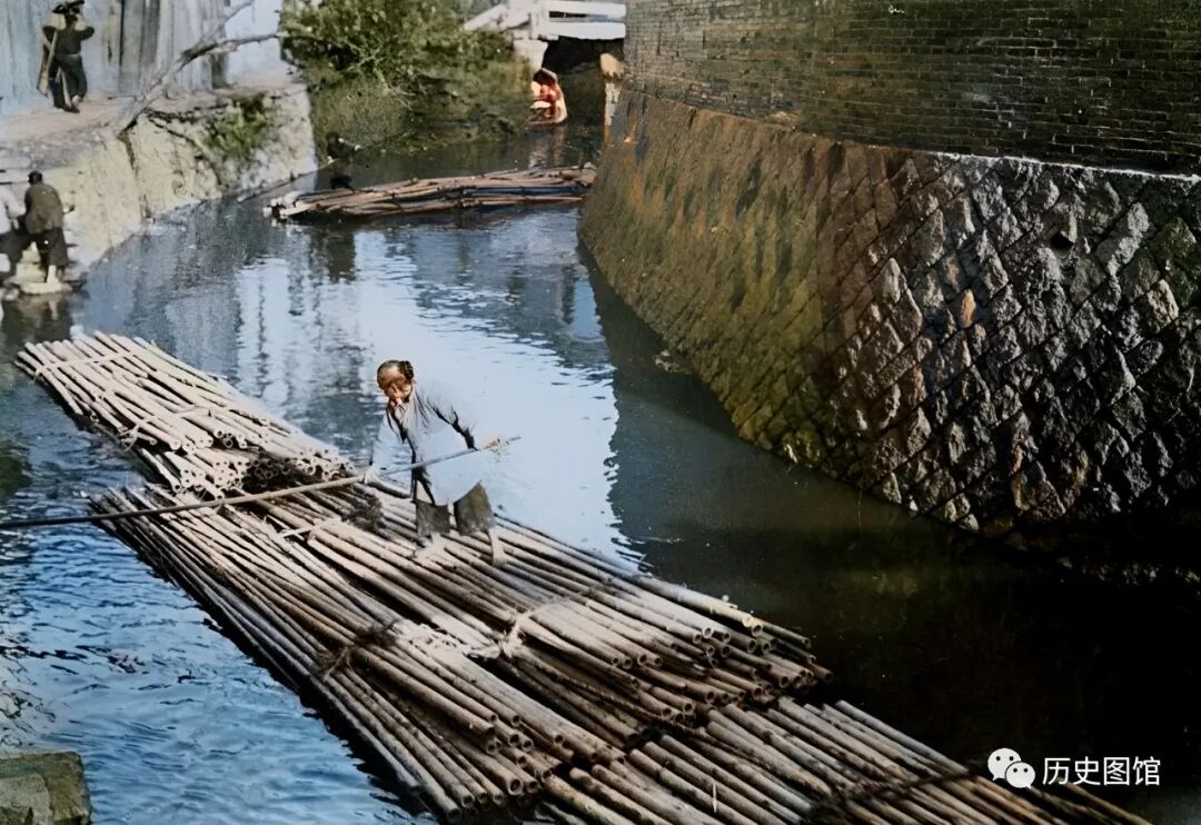 这是福州人通过闽江和运河,将山区出产的毛竹,以竹筏的方式运输到目的地。照片拍摄于1929年。